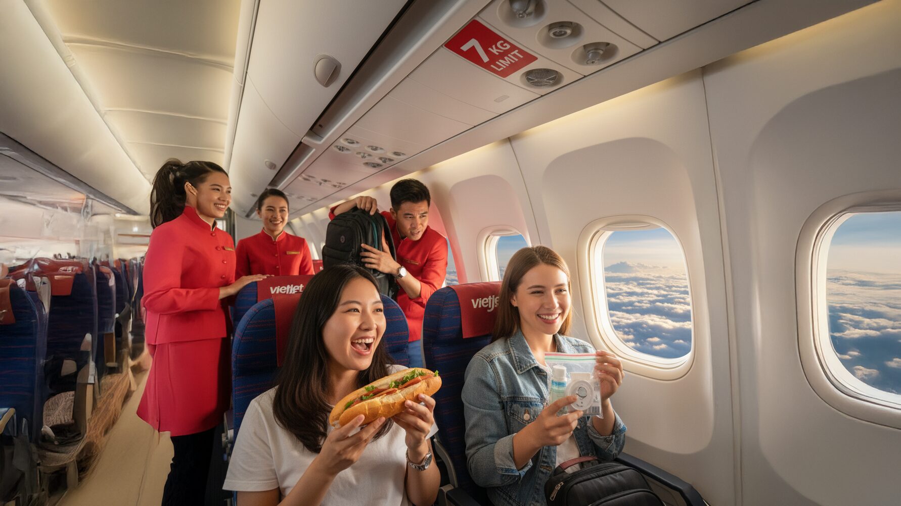 ベトジェットの機内に食べ物を持ち込むこと自体は可能です。LCCのため機内食は有料であり、事前に予約するか機内で購入する必要がありますが、自身で持ち込んだお菓子やパン、おにぎりなどを機内で食べることは基本的に禁止されていません。