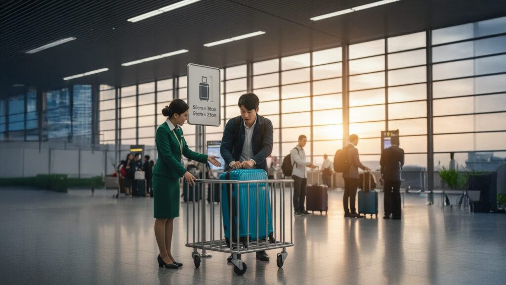 興味深い点として、多くの利用者の報告によると、サイズ規定は、重量制限ほど厳格にはチェックされていない傾向があるようです。「サイズをメジャーで測られたのを見たことがない」「空港にあるサイズ確認用のゲージ(枠)に入れるよう指示されなかった」という声が多く聞かれます。