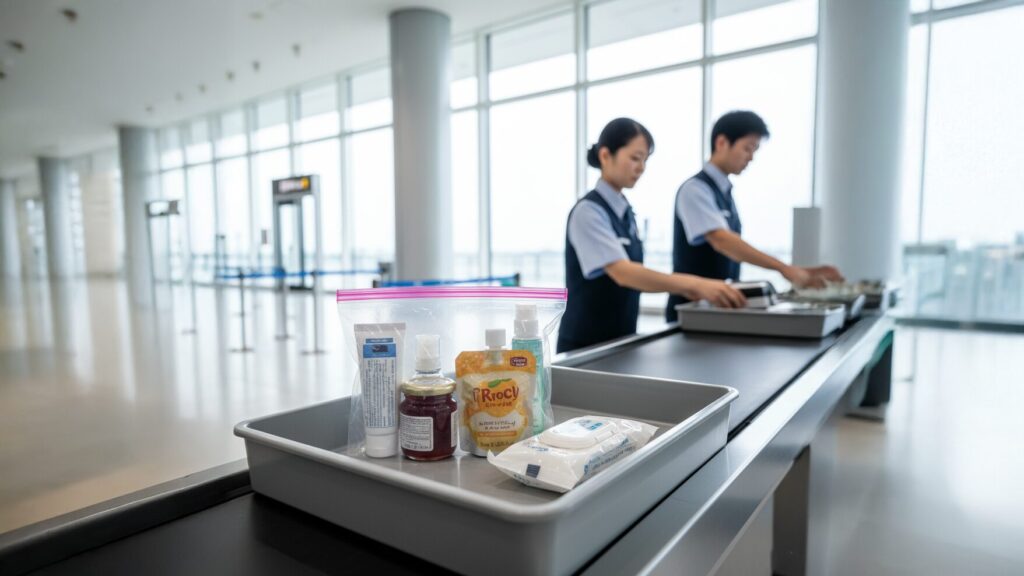• 機内持ち込みで食べ物は可能だが液体物ルールと検疫(特に肉製品)に細心の注意