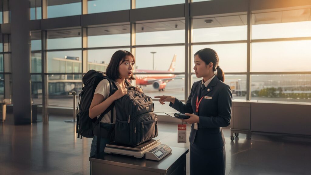ベトジェットを含む多くのLCCでは、「1kg単位の超過料金」という仕組みは、機内持ち込み荷物には適用されません。ルールは「7kgまでOK、それを超えたらNG(機内持ち込み不可)」の二択です。