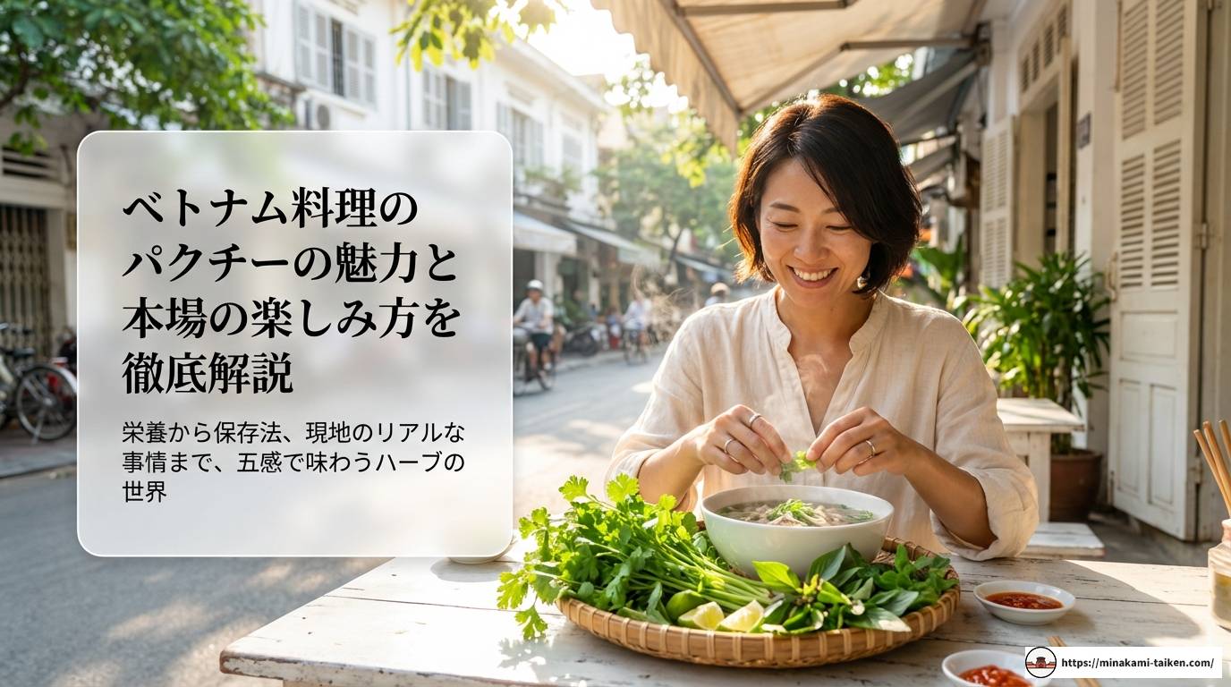 この記事を読み終える頃には、きっとあなたもベトナムのパクチーの奥深い魅力に惹き込まれ、次にベトナム料理を食べに行くのが待ち遠しくなっているはずです。文化や言葉の違いからくる面白いエピソードも交えながら、まるで一緒に現地の市場を歩いているような気分で楽しんでいただけたら嬉しいです。それでは、魅惑のハーブの世界へ一緒に出発しましょう。