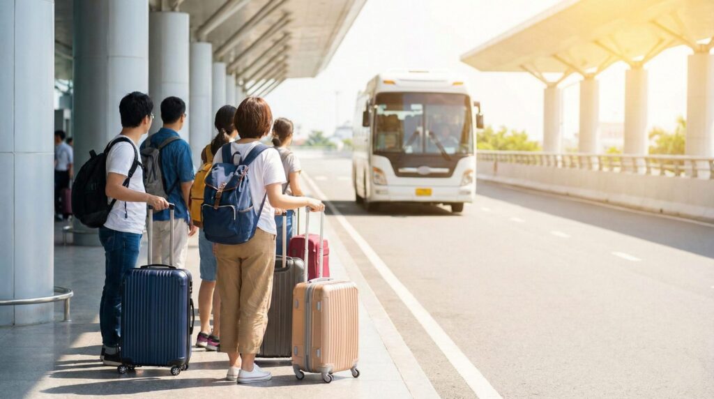 - バスの場合: 無料バスが走ってるんですけど、空港前の道路がもうカオスな渋滞なんですよ。だからバスが来ない、乗っても進まない。「歩いたほうが早かった!」ってなるリスク大です。